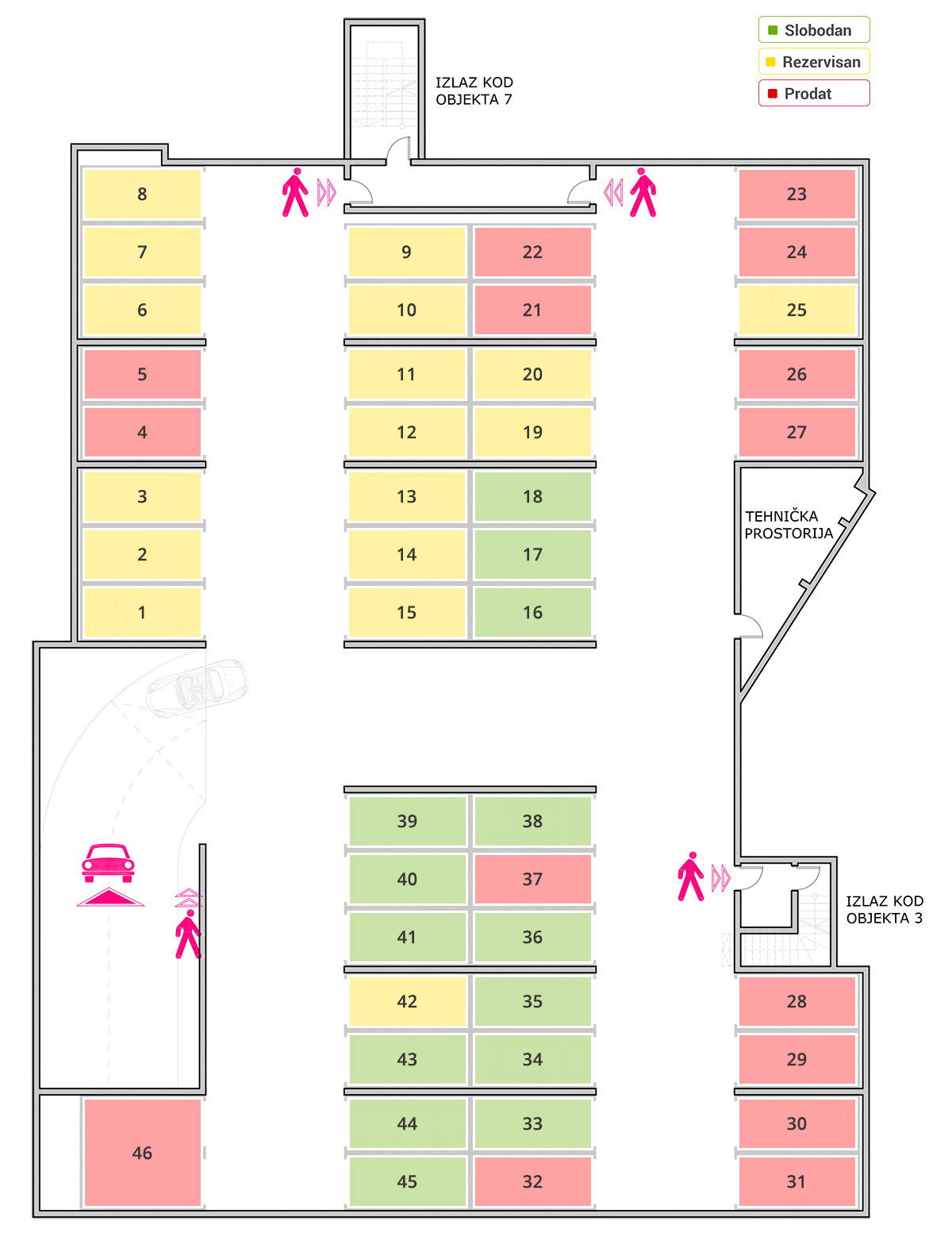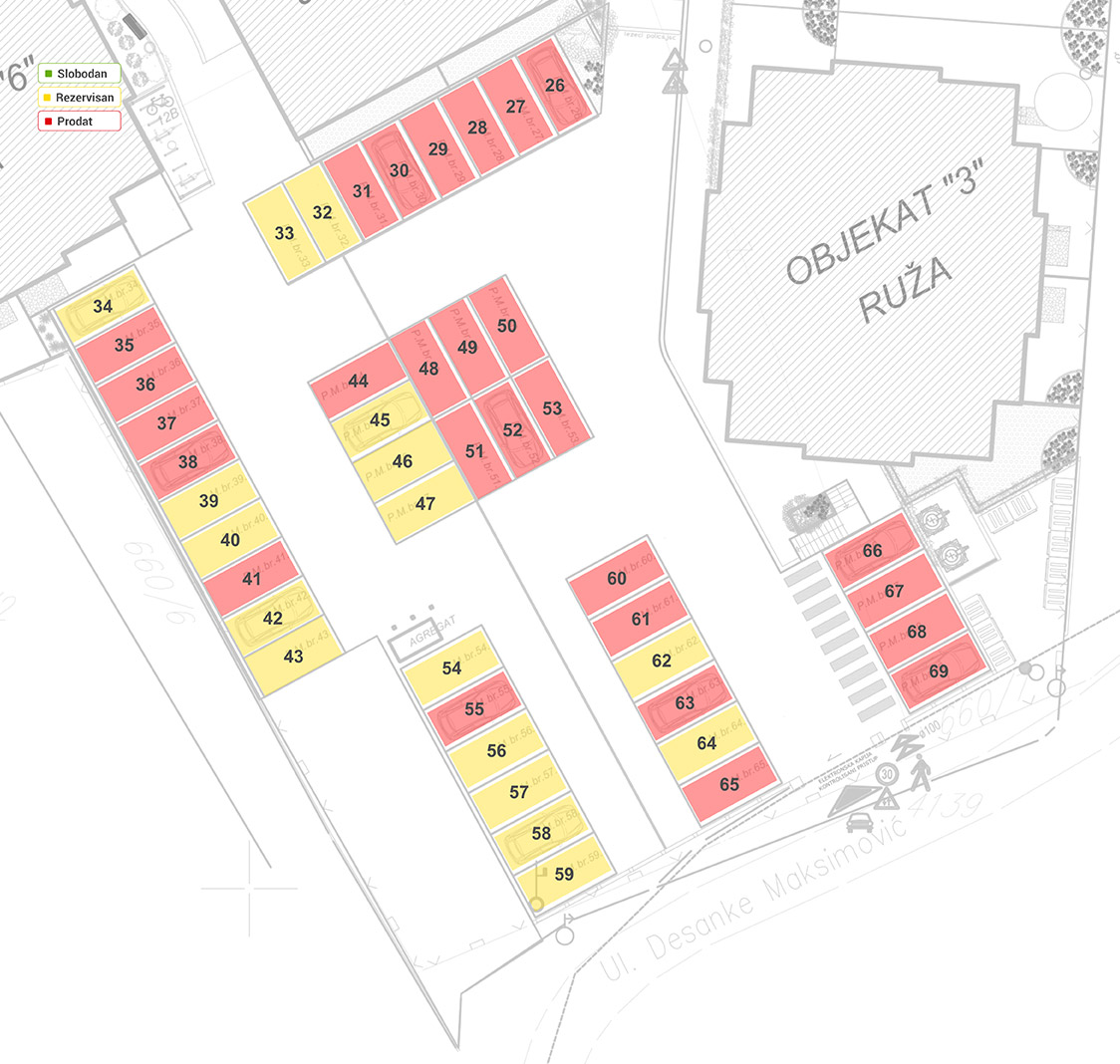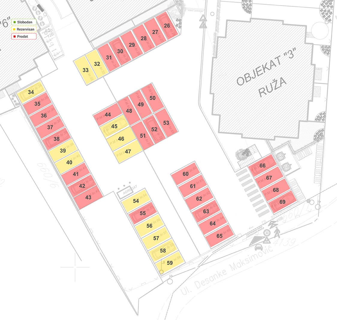 U novoizgrađenom stambenom kompleksu STEKAM BUKET, u okviru kog će biti izgrađeno ukupno 7 stambenih objekata nalazi se 46 podzemnih garažnih mesta i 69 parking mesta u parteru. Parking mesta su na prodaju po specijalnim cenama, a glavna pogodnost je bezbednost, jer se u kompleks ulazi samo uz karitcu i cela površina je pod stalnim video nadzorom. Iskoristite prednosti sjajne lokacije i obezbedite svoje parking mesto u pravom trenutku.